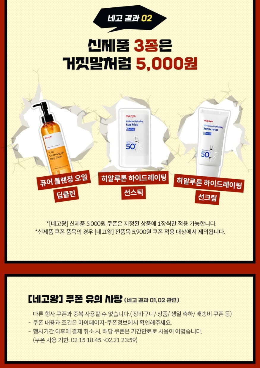 신제품 쿠폰 품목의 경우 네고왕 전품목 5,900원 쿠폰을 적용할 수 없습니다.