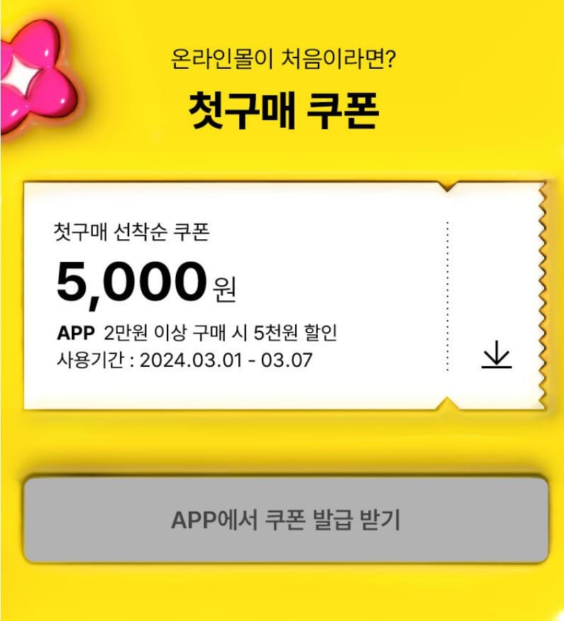 3. 온라인몰 첫 구매 : 5천원 선착순 쿠폰